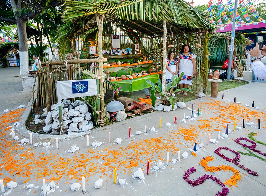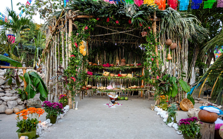 Una de las celebraciones más significativas es Hanal Pixan (finales de octubre y 1–2 de noviembre), la versión maya del Día de Muertos. Durante estos días, las familias preparan altares, cocinan platillos rituales y honran a sus difuntos como visitantes que regresan temporalmente. Más que una representación simbólica, es un acto íntimo de memoria y continuidad cultural.